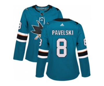 Women Adidas San Jose Sharks #8 Joe Pavelski Teal Home Authentic Stitched NHL Jersey