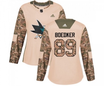 Women Adidas San Jose Sharks #89 Mikkel Boedker Authentic Camo Veterans Day Practice NHL Jersey