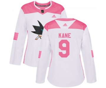 Women Adidas San Jose Sharks #9 Evander Kane Authentic White Pink Fashion NHL Jersey