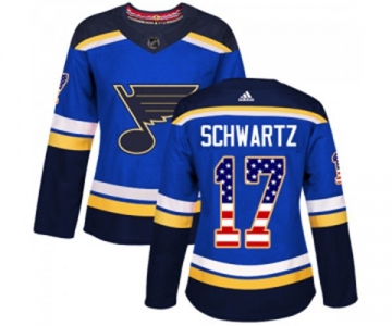 Women Adidas St. Louis Blues #17 Jaden Schwartz Authentic Blue USA Flag Fashion NHL Jersey