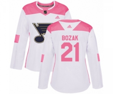Women Adidas St. Louis Blues #21 Tyler Bozak Authentic White Pink Fashion NHL Jersey