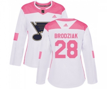 Women Adidas St. Louis Blues #28 Kyle Brodziak Authentic White Pink Fashion NHL Jersey