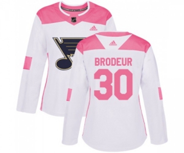 Women Adidas St. Louis Blues #30 Martin Brodeur Authentic White Pink Fashion NHL Jersey
