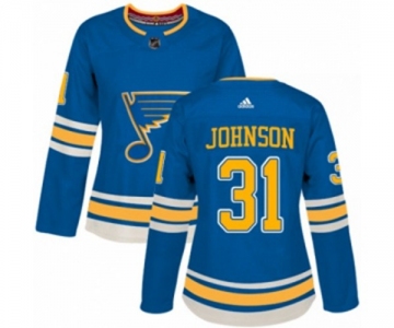Women Adidas St. Louis Blues #31 Chad Johnson Authentic Navy Blue Alternate NHL Jersey
