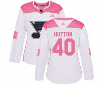 Women Adidas St. Louis Blues #40 Carter Hutton Authentic White Pink Fashion NHL Jersey