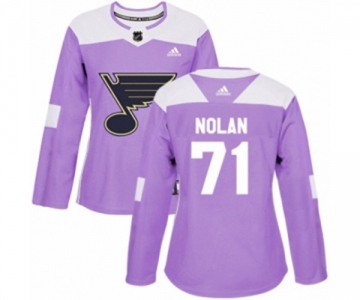 Women Adidas St. Louis Blues #71 Jordan Nolan Authentic Purple Fights Cancer Practice NHL Jersey