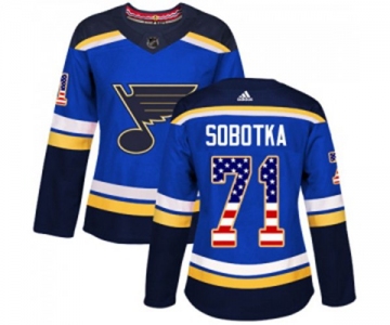 Women Adidas St. Louis Blues #71 Vladimir Sobotka Authentic Blue USA Flag Fashion NHL Jersey