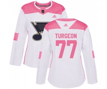 Women Adidas St. Louis Blues #77 Pierre Turgeon Authentic White Pink Fashion NHL Jersey