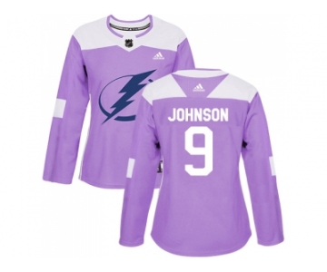 Women Adidas Tampa Bay Lightning #9 Tyler Johnson Purple Authentic Fights Cancer Stitched NHL Jersey