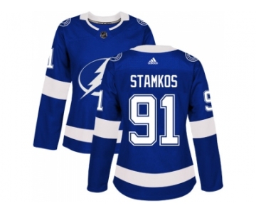 Women Adidas Tampa Bay Lightning #91 Steven Stamkos Blue Home Authentic Stitched NHL Jerse