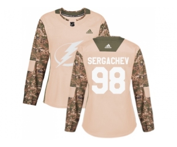 Women Adidas Tampa Bay Lightning #98 Mikhail Sergachev Camo Authentic 2017 Veterans Day Stitched NHL Jersey