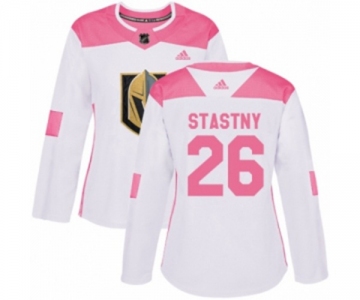 Women Adidas Vegas Golden Knights #26 Paul Stastny Authentic White Pink Fashion NHL Jersey