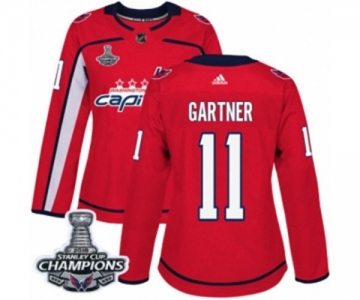 Women Adidas Washington Capitals #11 Mike Gartner Authentic Red Home 2018 Stanley Cup Final Champions NHL Jersey