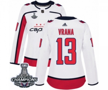 Women Adidas Washington Capitals #13 Jakub Vrana Authentic White Away 2018 Stanley Cup Final Champions NHL Jersey