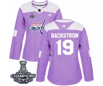 Women Adidas Washington Capitals #19 Nicklas Backstrom Authentic Purple Fights Cancer Practice 2018 Stanley Cup Final Champions NHL Jersey