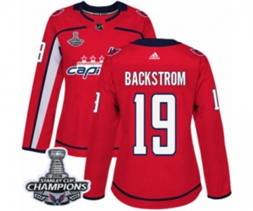 Women Adidas Washington Capitals #19 Nicklas Backstrom Authentic Red Home 2018 Stanley Cup Final Champions NHL Jersey