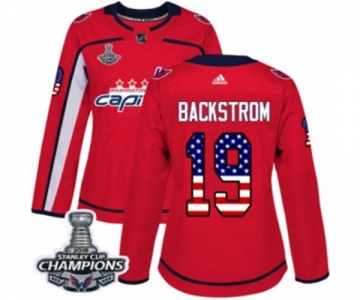 Women Adidas Washington Capitals #19 Nicklas Backstrom Authentic Red USA Flag Fashion 2018 Stanley Cup Final Champions NHL Jersey