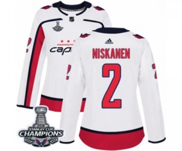 Women Adidas Washington Capitals #2 Matt Niskanen Authentic White Away 2018 Stanley Cup Final Champions NHL Jersey