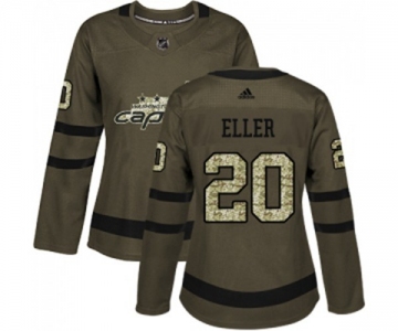 Women Adidas Washington Capitals #20 Lars Eller Authentic Green Salute to Service NHL Jersey