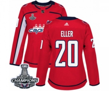 Women Adidas Washington Capitals #20 Lars Eller Authentic Red Home 2018 Stanley Cup Final Champions NHL Jersey