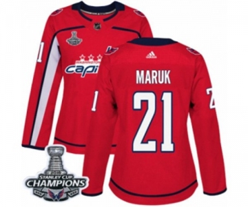 Women Adidas Washington Capitals #21 Dennis Maruk Authentic Red Home 2018 Stanley Cup Final Champions NHL Jersey