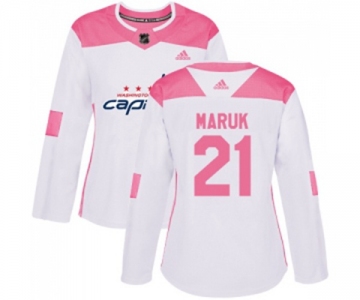 Women Adidas Washington Capitals #21 Dennis Maruk Authentic White Pink Fashion NHL Jersey