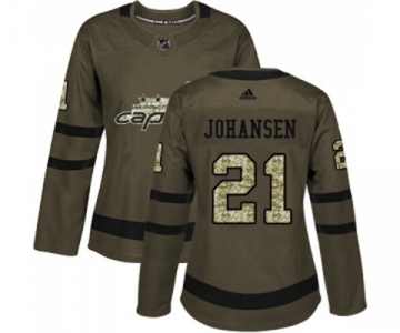 Women Adidas Washington Capitals #21 Lucas Johansen Authentic Green Salute to Service NHL Jersey