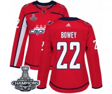 Women Adidas Washington Capitals #22 Madison Bowey Authentic Red Home 2018 Stanley Cup Final Champions NHL Jersey