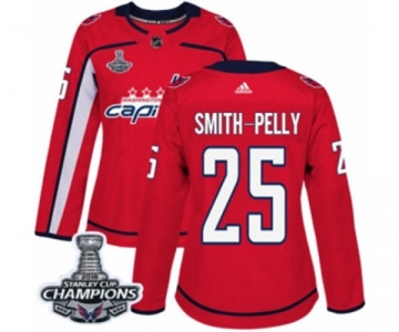 Women Adidas Washington Capitals #25 Devante Smith-Pelly Authentic Red Home 2018 Stanley Cup Final Champions NHL Jersey