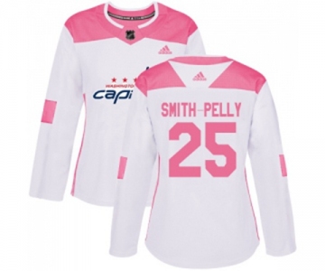 Women Adidas Washington Capitals #25 Devante Smith-Pelly Authentic White Pink Fashion NHL Jersey