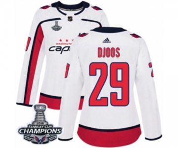 Women Adidas Washington Capitals #29 Christian Djoos Authentic White Away 2018 Stanley Cup Final Champions NHL Jersey