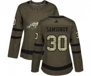 Women Adidas Washington Capitals #30 Ilya Samsonov Authentic Green Salute to Service NHL Jersey