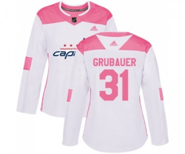 Women Adidas Washington Capitals #31 Philipp Grubauer Authentic White Pink Fashion NHL Jersey