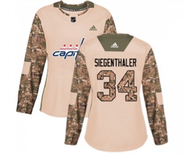 Women Adidas Washington Capitals #34 Jonas Siegenthaler Authentic Camo Veterans Day Practice NHL Jersey
