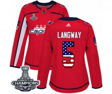 Women Adidas Washington Capitals #5 Rod Langway Authentic Red USA Flag Fashion 2018 Stanley Cup Final Champions NHL Jersey