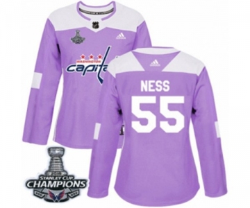Women Adidas Washington Capitals #55 Aaron Ness Authentic Purple Fights Cancer Practice 2018 Stanley Cup Final Champions NHL Jersey