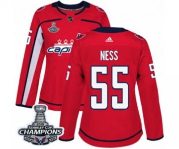 Women Adidas Washington Capitals #55 Aaron Ness Authentic Red Home 2018 Stanley Cup Final Champions NHL Jersey