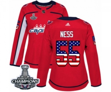 Women Adidas Washington Capitals #55 Aaron Ness Authentic Red USA Flag Fashion 2018 Stanley Cup Final Champions NHL Jersey