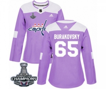 Women Adidas Washington Capitals #65 Andre Burakovsky Authentic Purple Fights Cancer Practice 2018 Stanley Cup Final Champions NHL Jersey