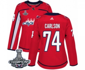 Women Adidas Washington Capitals #74 John Carlson Authentic Red Home 2018 Stanley Cup Final Champions NHL Jersey