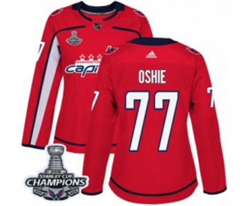 Women Adidas Washington Capitals #77 T.J. Oshie Authentic Red Home 2018 Stanley Cup Final Champions NHL Jersey