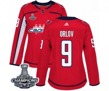 Women Adidas Washington Capitals #9 Dmitry Orlov Authentic Red Home 2018 Stanley Cup Final Champions NHL Jersey