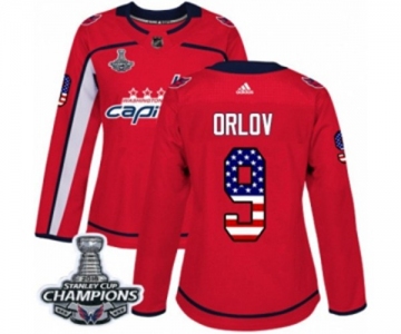 Women Adidas Washington Capitals #9 Dmitry Orlov Authentic Red USA Flag Fashion 2018 Stanley Cup Final Champions NHL Jersey