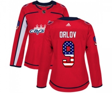 Women Adidas Washington Capitals #9 Dmitry Orlov Authentic Red USA Flag Fashion NHL Jersey