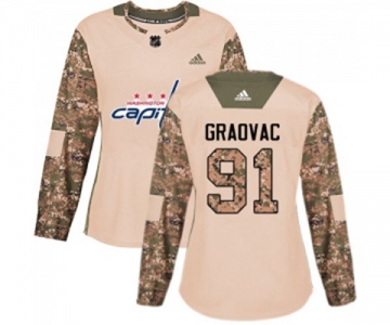 Women Adidas Washington Capitals #91 Tyler Graovac Authentic Camo Veterans Day Practice NHL Jersey