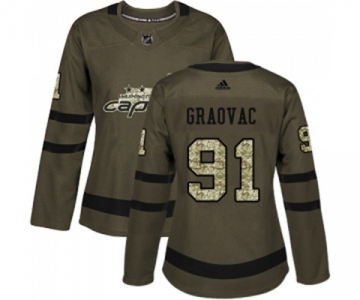 Women Adidas Washington Capitals #91 Tyler Graovac Authentic Green Salute to Service NHL Jersey