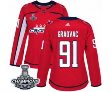 Women Adidas Washington Capitals #91 Tyler Graovac Authentic Red Home 2018 Stanley Cup Final Champions NHL Jersey