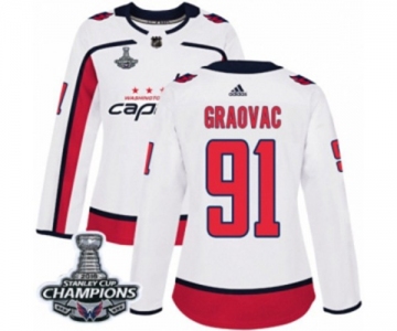 Women Adidas Washington Capitals #91 Tyler Graovac Authentic White Away 2018 Stanley Cup Final Champions NHL Jersey