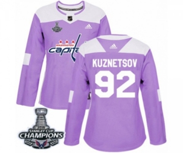 Women Adidas Washington Capitals #92 Evgeny Kuznetsov Authentic Purple Fights Cancer Practice 2018 Stanley Cup Final Champions NHL Jersey