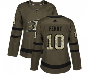 Women Anaheim Ducks #10 Corey Perry Authentic Green Salute to Service Hockey Jersey
